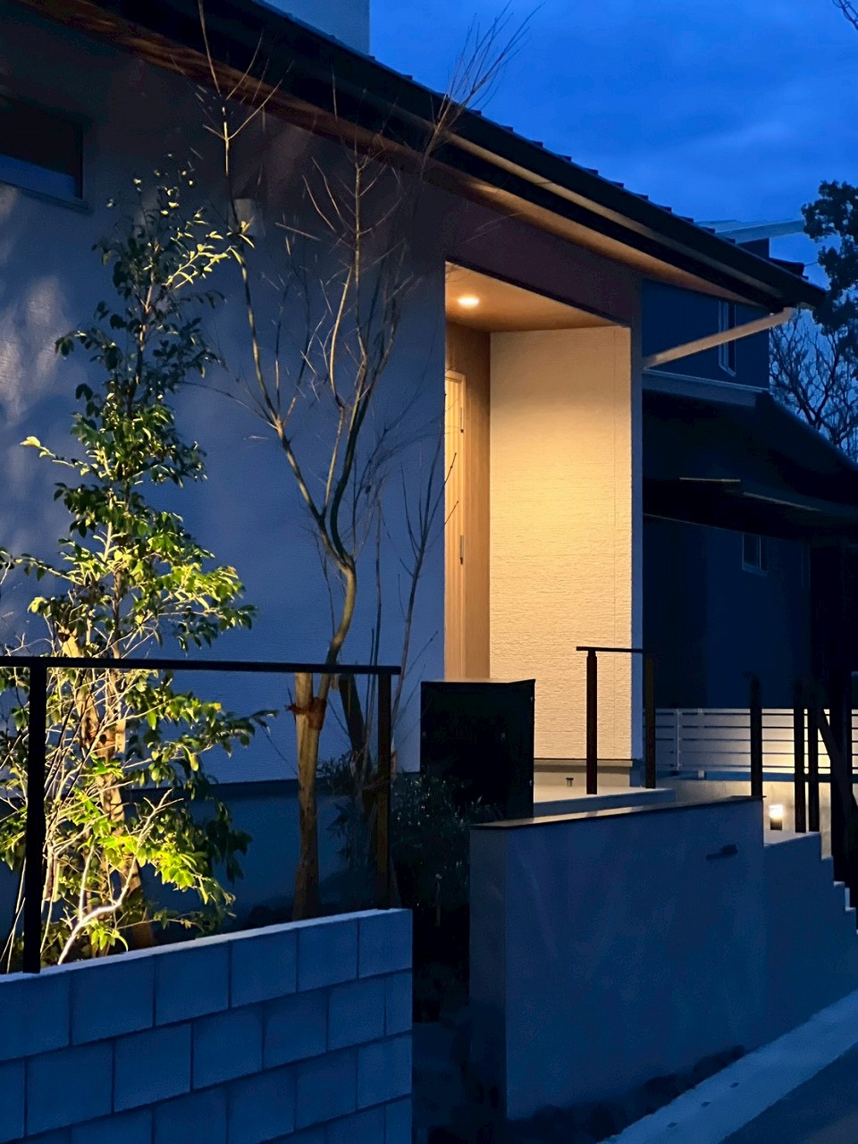 玄関は雨落ち犬走、中庭は鎖桶を作りました。